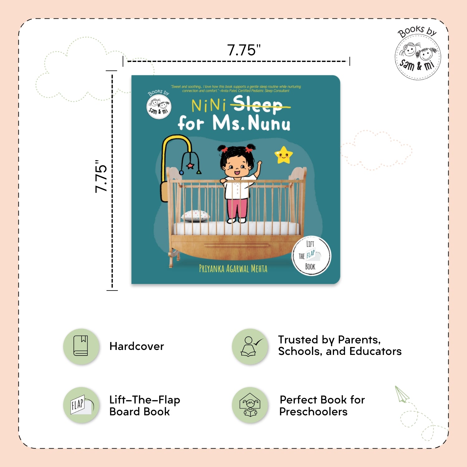Nini for Ms Nunu is a lift-the-flap book and is the perfect first book to set the child's sleep routine. Setting a good bedtime routine helps calm the child, makes the child secure and offers a chance for the parent and child to bond.